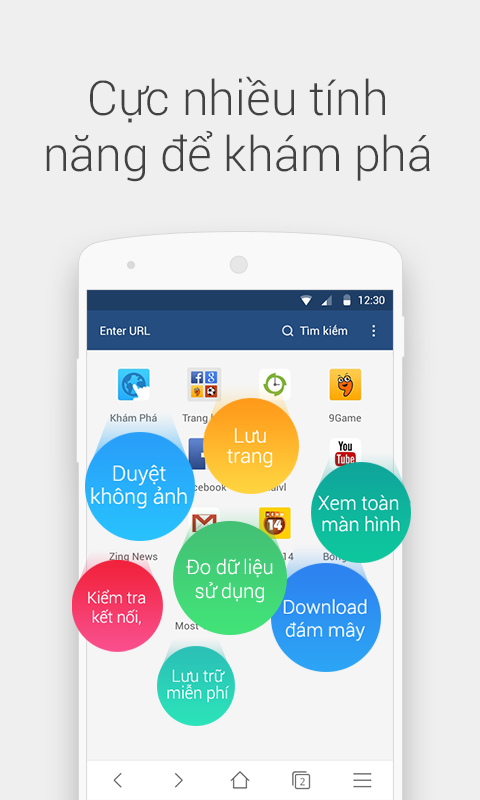 Download đám mây, Quét mã QR, Lưu trữ miễn phí, Lưu trang, Duyệt không ảnh, Xem toàn màn hình, Đo dữ liệu sử dụng, Kiểm tra kết nối,.v..v..